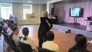 Школьники Белого Яра, Лянтора, Фёдоровского и Русскинской имели возможность задать вопросы по творчеству югорского писателя руководителю издательского проекта, режиссёру документального кино, публицисту Ольге Корниенко.