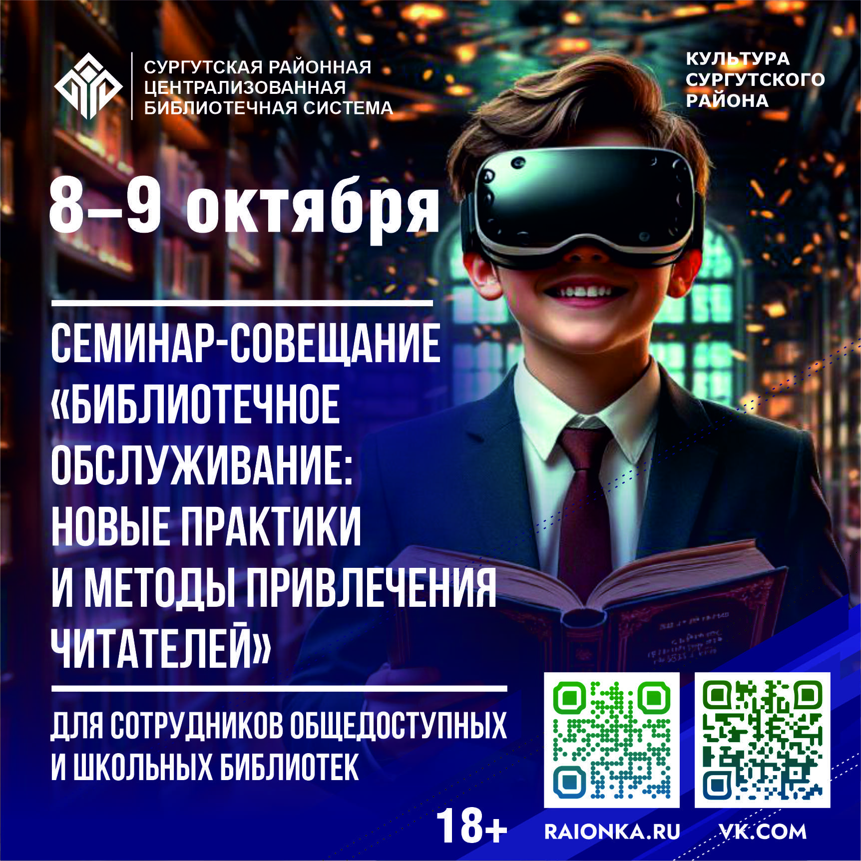 8–9 октября в Сургутском районе пройдёт двухдневный семинар-совещание «Библиотечное обслуживание: новые методы и практики привлечения читателей».