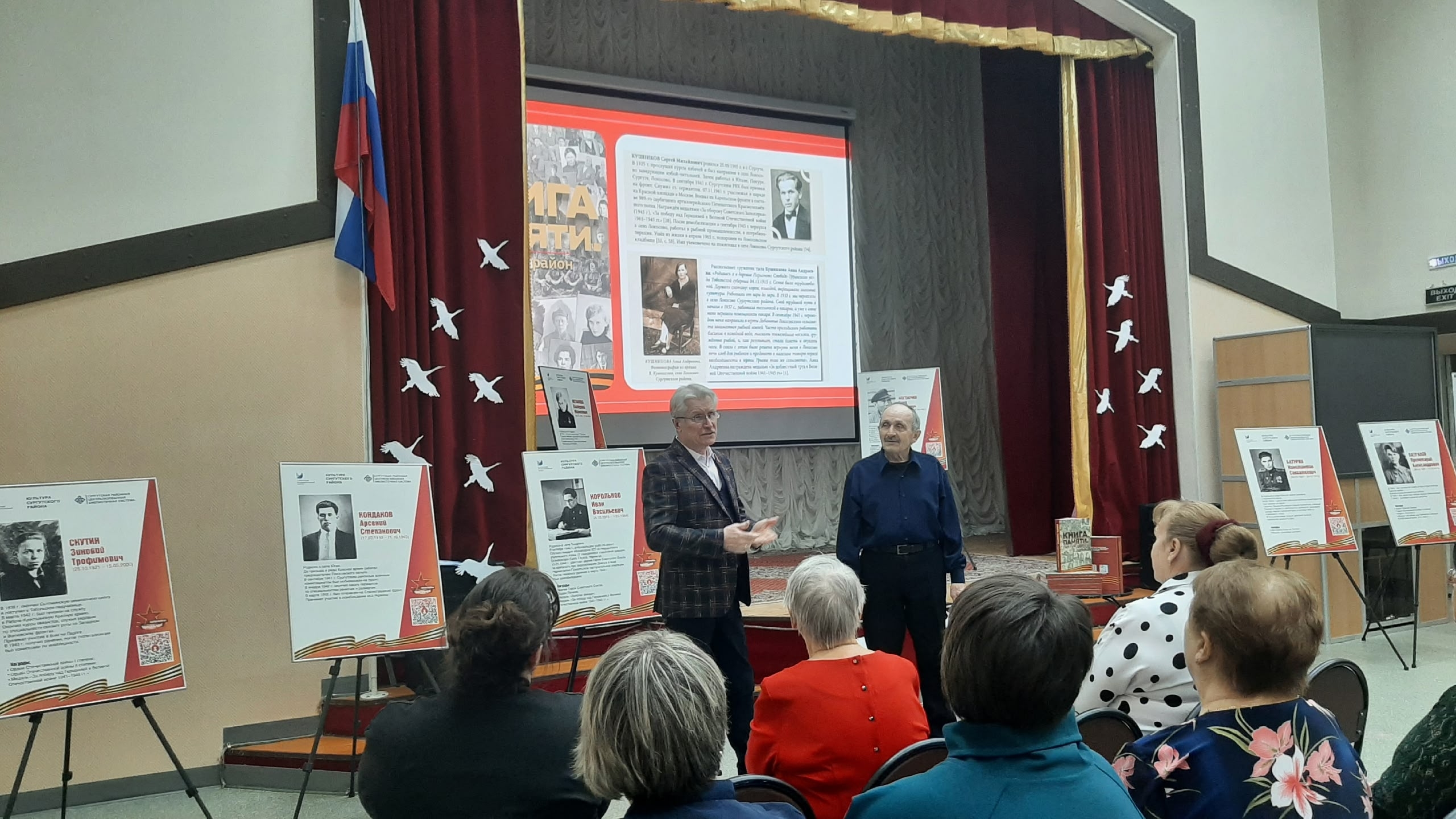 Автор-составитель издания – Владимир Домрачеев – в начале встречи рассказал о работе в архивах, военкоматах, в фондах музеев, о том, как записывал интервью с детьми и внуками ветеранов: «В Книге Памяти представлены биографии о 2 372 жителях района. Но это не значит, что мы нашли всех несмотря на то, что мы работали над книгой практически пять лет.
