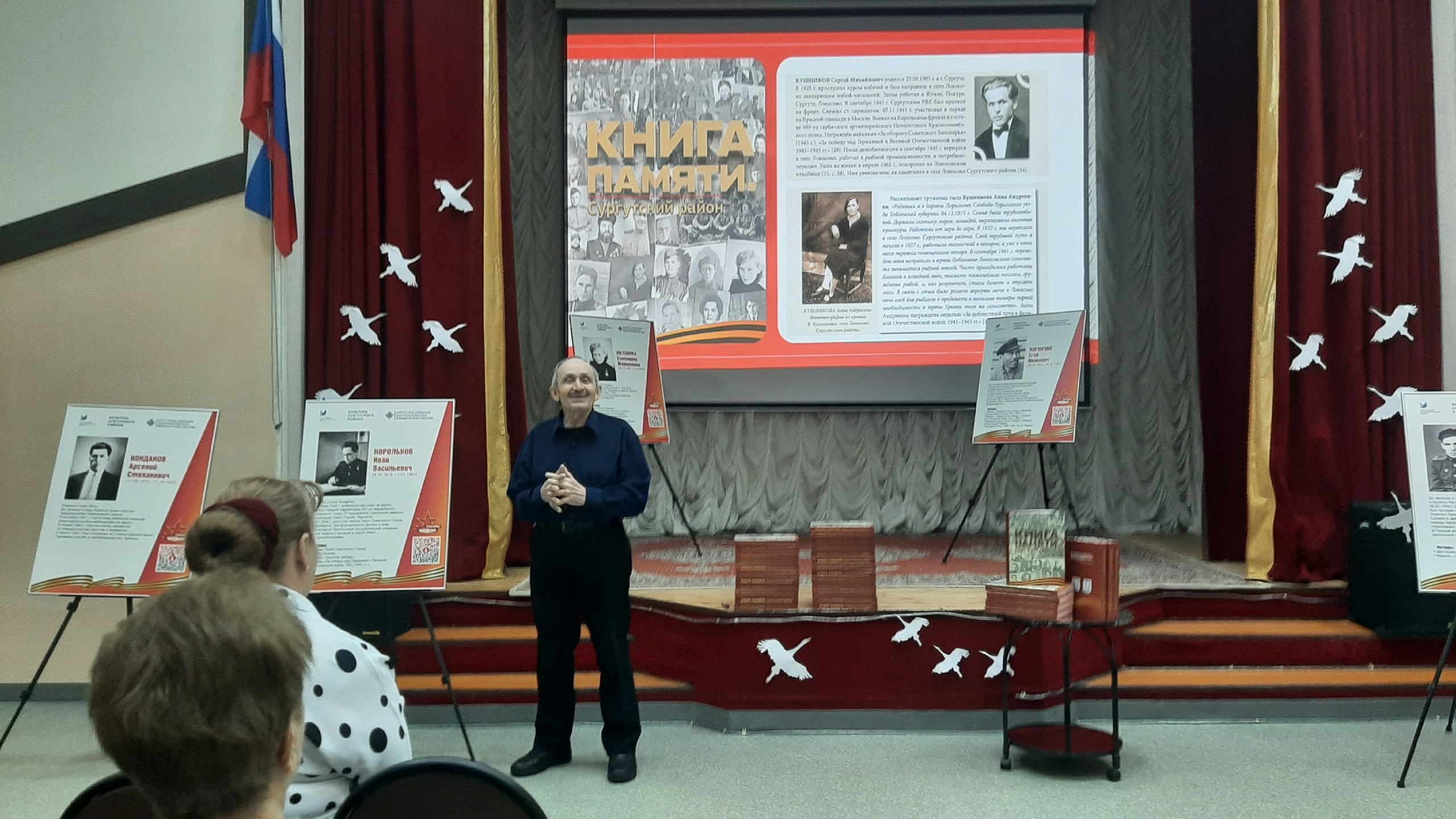 Книгу Памяти Сургутского района первым получил местный краевед Валерий Кушников, на её страницах написано о его родителях: «Мой отец Сергей Михайлович был призван на фронт в 1941 году и участвовал 7 ноября 1941 года в параде на Красной площади в Москве. Воевал в составе 189-го полка Заполярья, старший сержант артиллерии. Но если говорить о моих родственниках, воевало на фронтах этой войны, страшно сказать, 8 человек только по материнской линии. Трое из них были офицерами. Моя мама Анна Андреевна – участник трудового фронта, рыбачила, в сентябре уже было холодно, но работали босиком, у неё стали распухать ноги. Начальник рыбучастка отправил её в Локосово печь хлеб для рыбаков. Награждена медалью «За доблестный труд в годы Великой Отечественной войны».