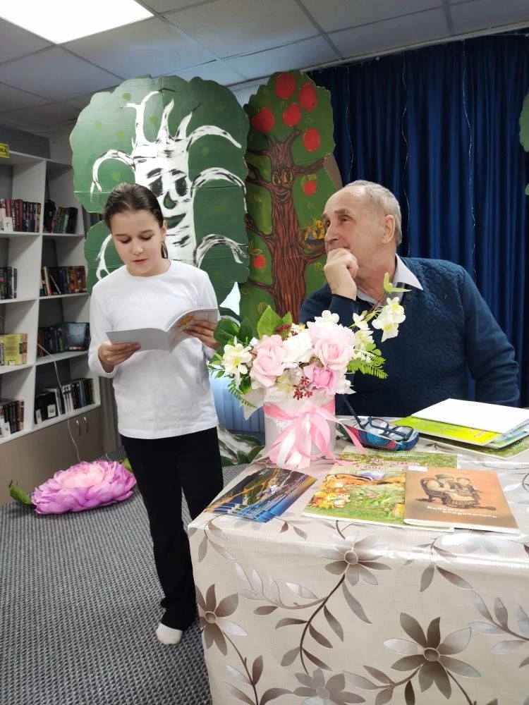 Сергей Петрович не только пишет добрые стихи и рассказы, но и составляет загадки. Он предложил школьникам разгадать их из сборника «Хорошее дело». Дети с удовольствием читали стихи автора, многие декламировали их наизусть, а также играли в литературную игру «Буриме», пробуя сочинять собственные стихи.