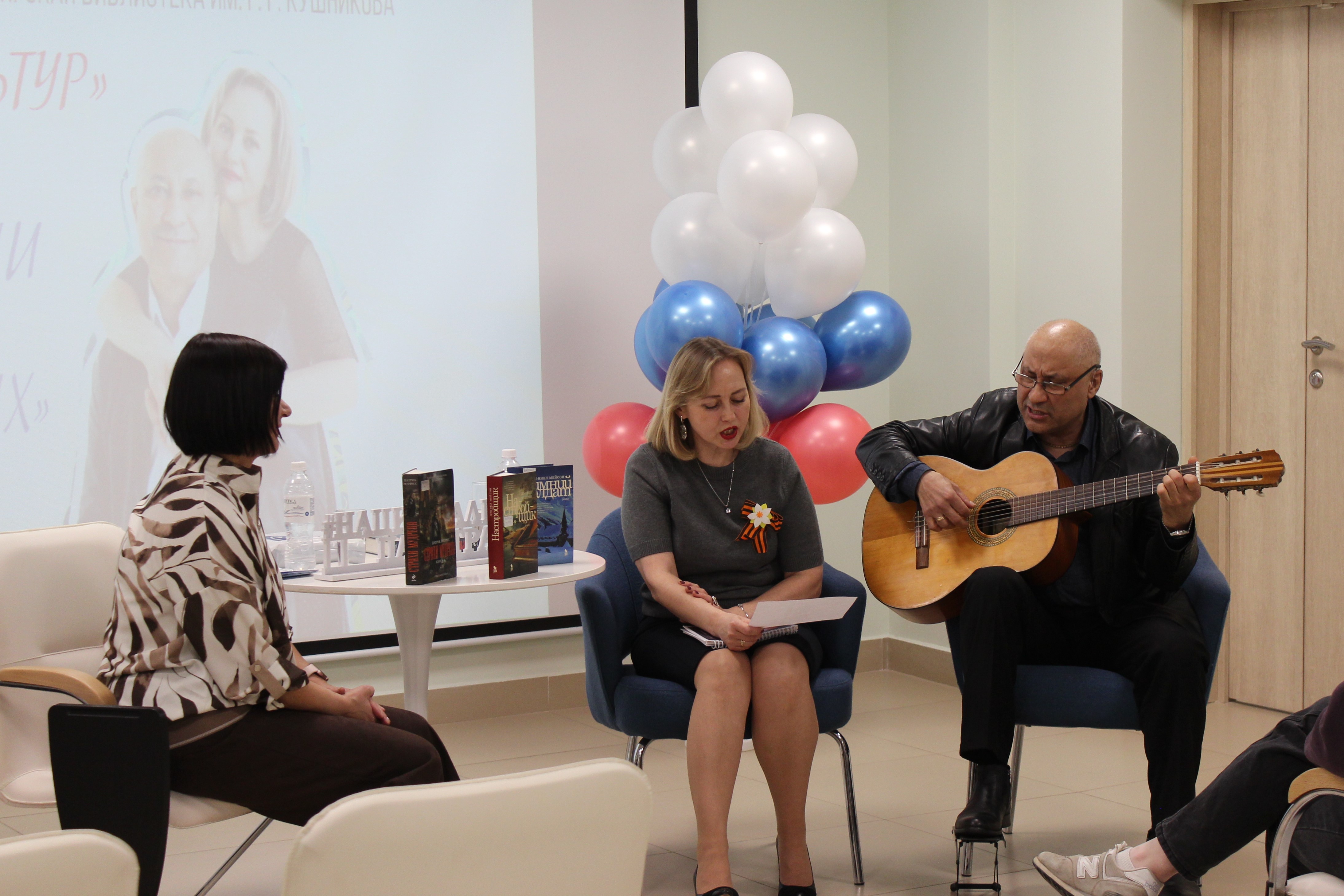 По-семейному трогательно прошла встреча с супружеской парой Ташбаевых. Их история – про любовь, традиции и про то, как важно слышать друг друга. Супруги поделились тем, как складывалась их семья, рассказали о воспитании детей, о ценностях и ориентирах, которые они старались передать – уважении, поддержке, умении слышать и понимать себя, близких и окружающих. Атмосфера стала особенно тёплой, когда в руках главы семейства зазвучала гитара: супруги вместе дебютировали с авторской песней. Аудитория тепло приняла творческий тандем и последние куплеты пыталась подпевать.