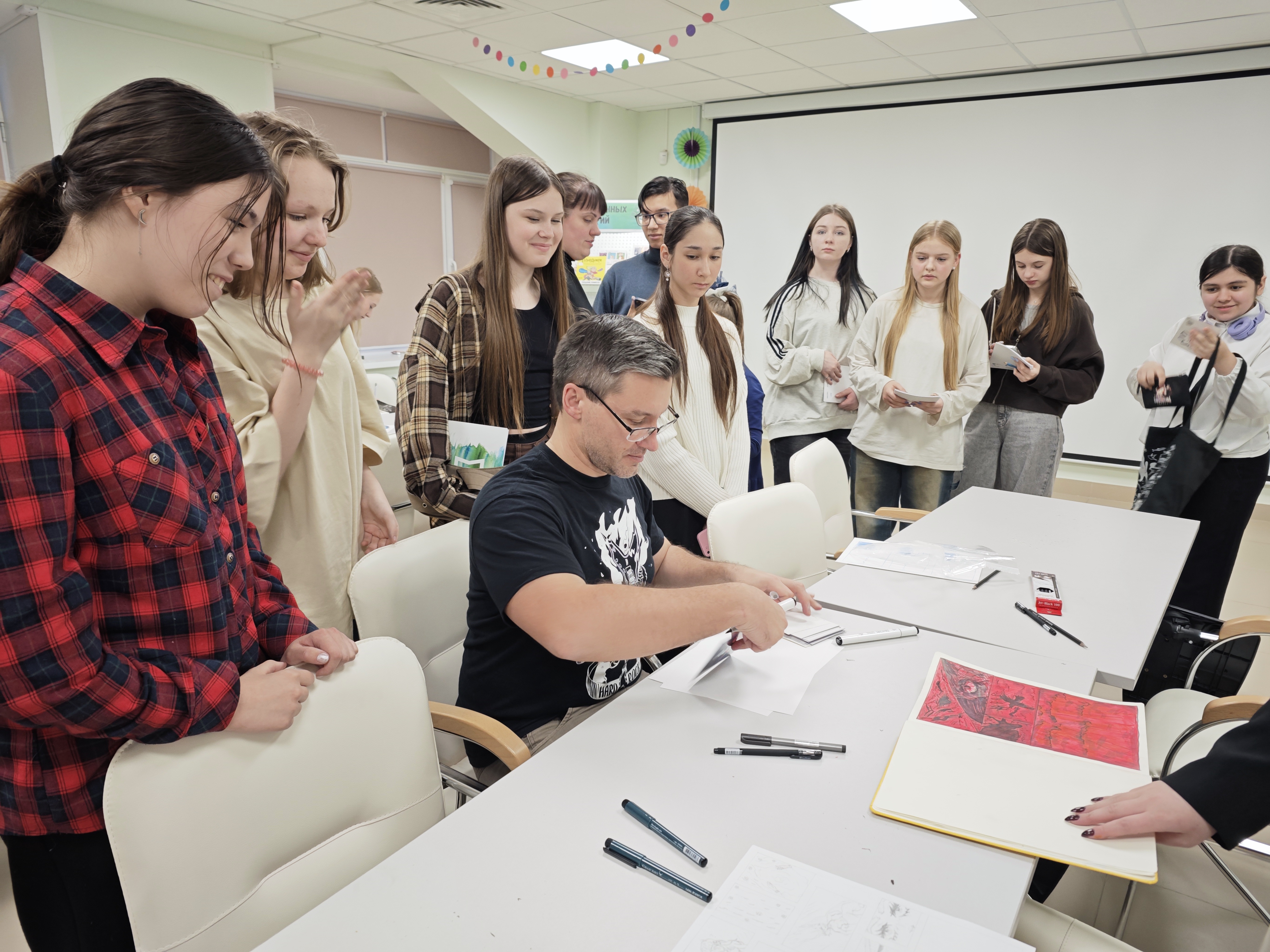Завершились мастер-классы вручением сертификатов о приобретённых навыках, подписанных экспертом и охотой за его автографами. На прощание Евгений оставил частичку своей «суперсилы» каждому участнику, заложив фундамент для будущих комикс-подвигов. Так что, ждите новых югорских героев, истории о них уже рисуют!