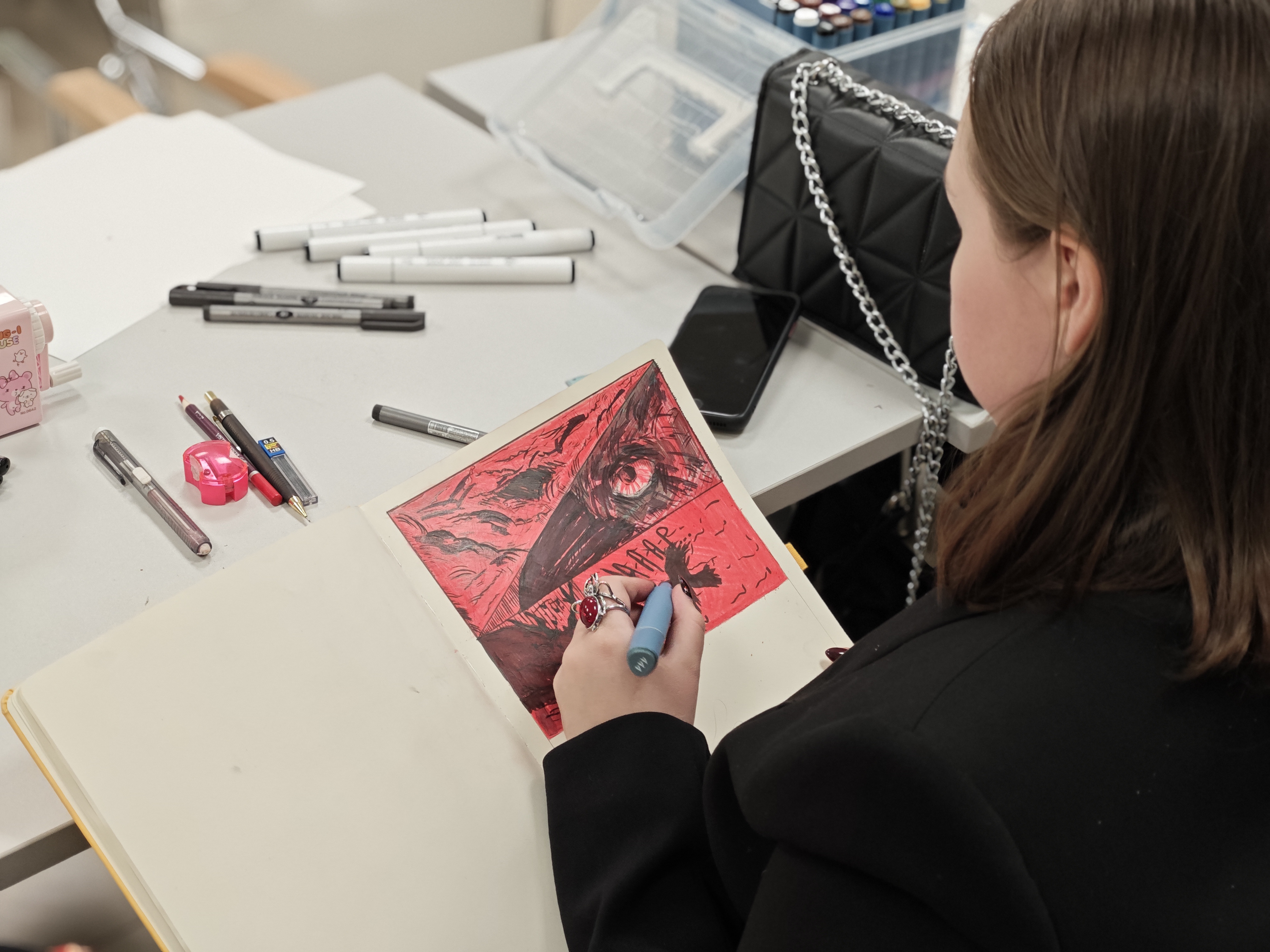 Атмосфера на мастер-классах была настолько творческой, что казалось, сама бумага начинает дышать и рассказывать истории. Евгений, словно добрый волшебник, щедро делился секретами мастерства, раскрывая секреты успешного комикса. Никакой зубрёжки и занудства, только драйв, креатив и безудержная фантазия!